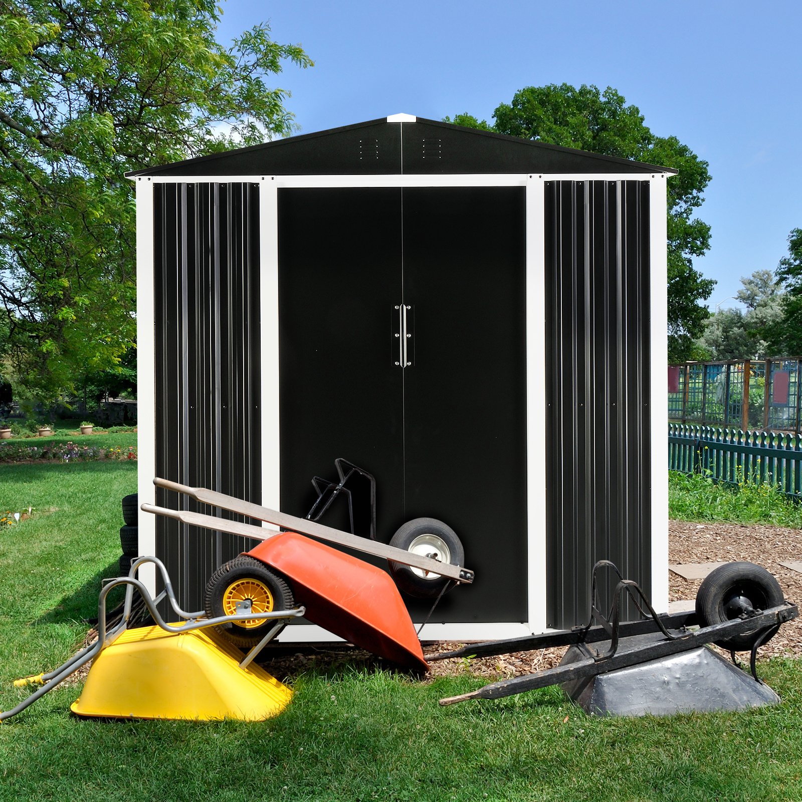 6 x 4 FT Outdoor Storage Shed, Metal Garden Storage House with Double Sliding Doors for Backyard Outdoor Patio, Black 6 x 4 FT Outdoor Storage Shed, Metal Garden Storage House with Double Sliding Doors for Backyard Outdoor Patio, Black 6 x 4 FT Outdoor Storage Shed, Metal Garden Storage House with Double Sliding Doors for Backyard Outdoor Patio, Black