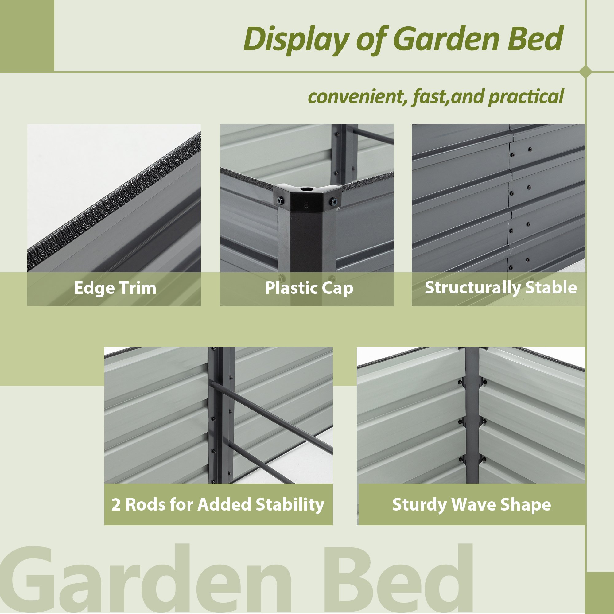 [Value for money]Whether you're into growing fresh vegetables, caring for colorful plants, or harvesting tasty fruits, the Galvanized Raised Garden Bed offers you the ideal space to realize your botanical dreams. Let your limitless creativity flow and immerse yourself in the joy of gardening.