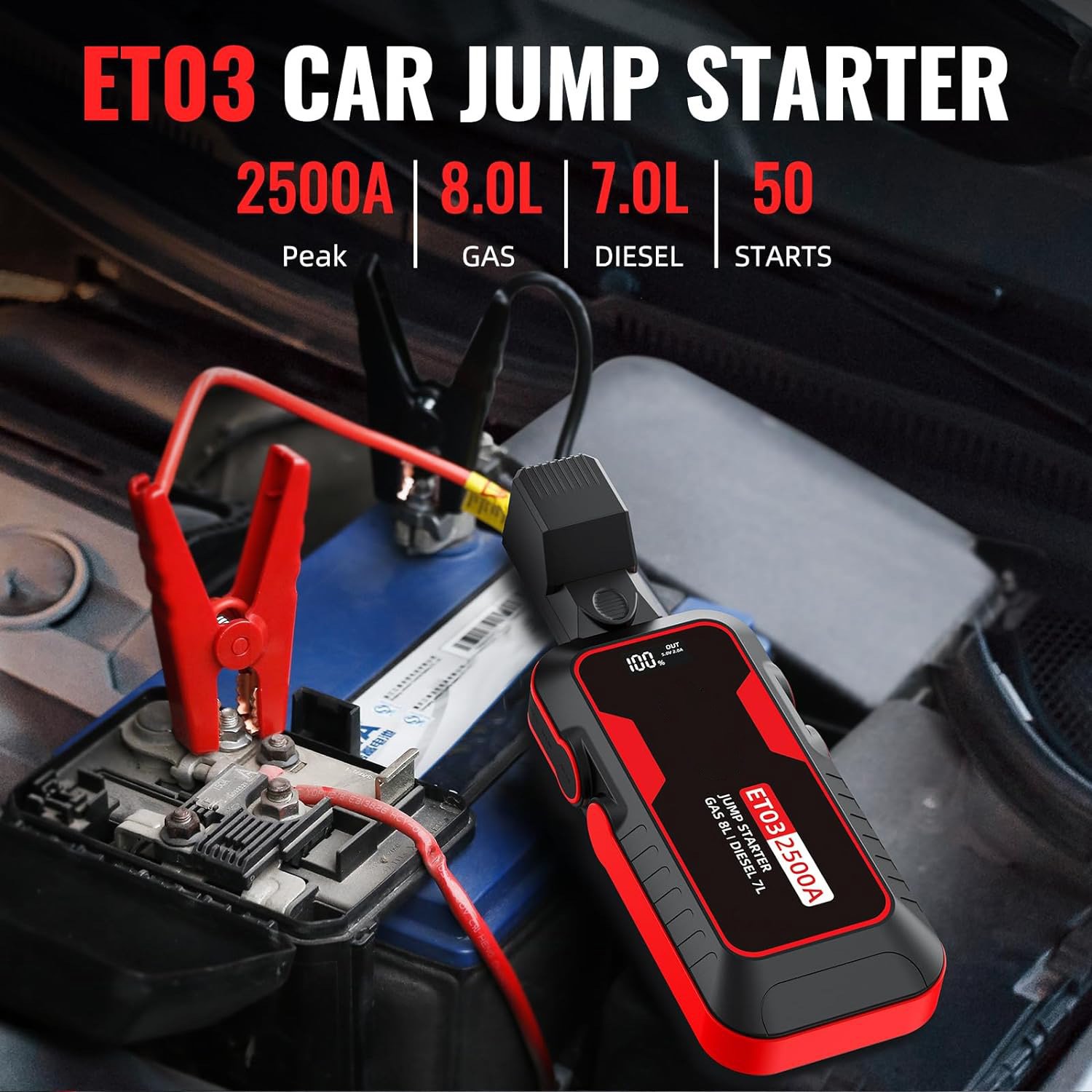 • [4000A Jump Start Battery Pack]The 15,000mAh jump starter is equipped with a peak current of 4000A, enabling it to start 12V vehicles (8.0L gasoline/6.0L diesel engine, including hybrid power) in just 3 seconds. Even in low temperatures (-20°F to 70°F), it exhibits superior starting performance with just 80% battery capacity. This portable jump starter can initiate the vehicle up to 50 times and boasts a service life of over 1000 charge cycles.