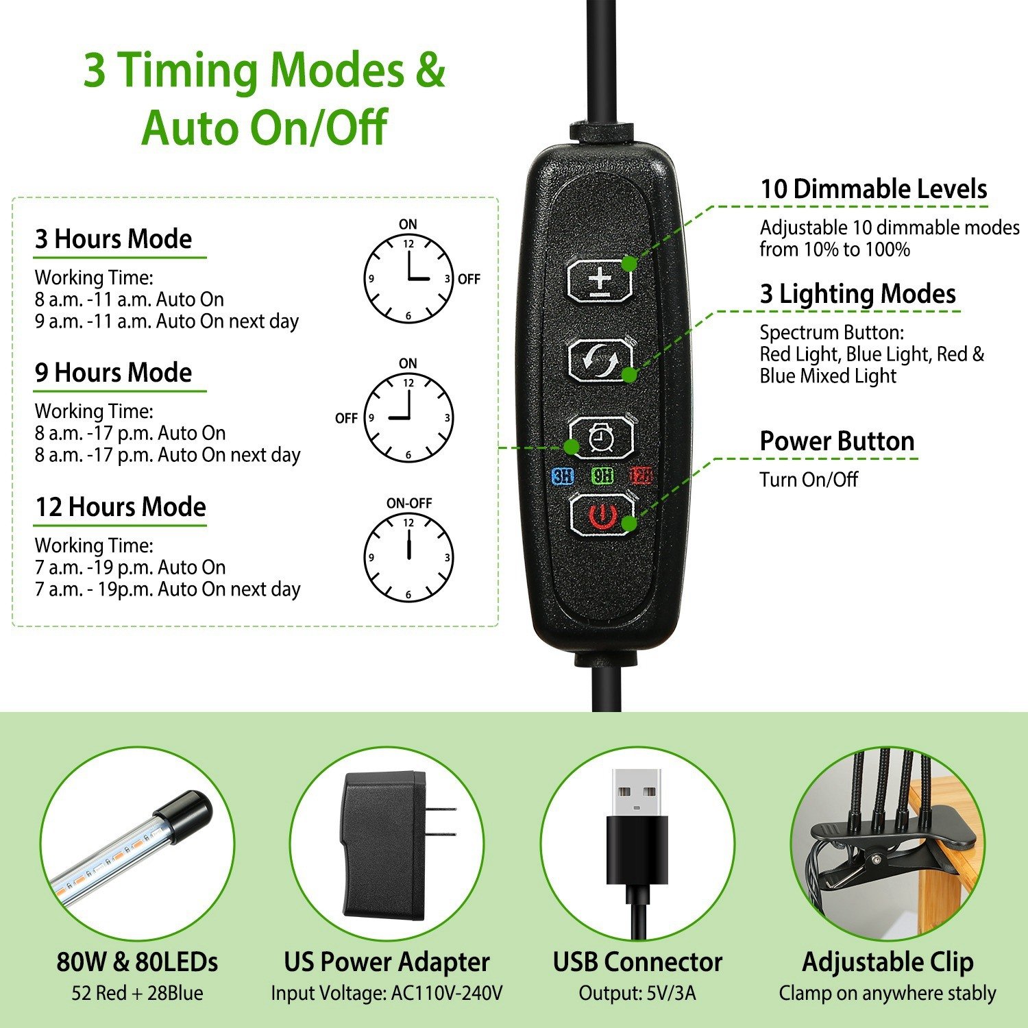 **360 Degrees Adjustable Goose Necks*:Powered by USB or AC Power Plug(USB power adapter included),it’s portable and convenient to use at home or in the office. The goose necks can be rotated 360 degrees so you can easily control the angle and the distance between the lamp and plants.