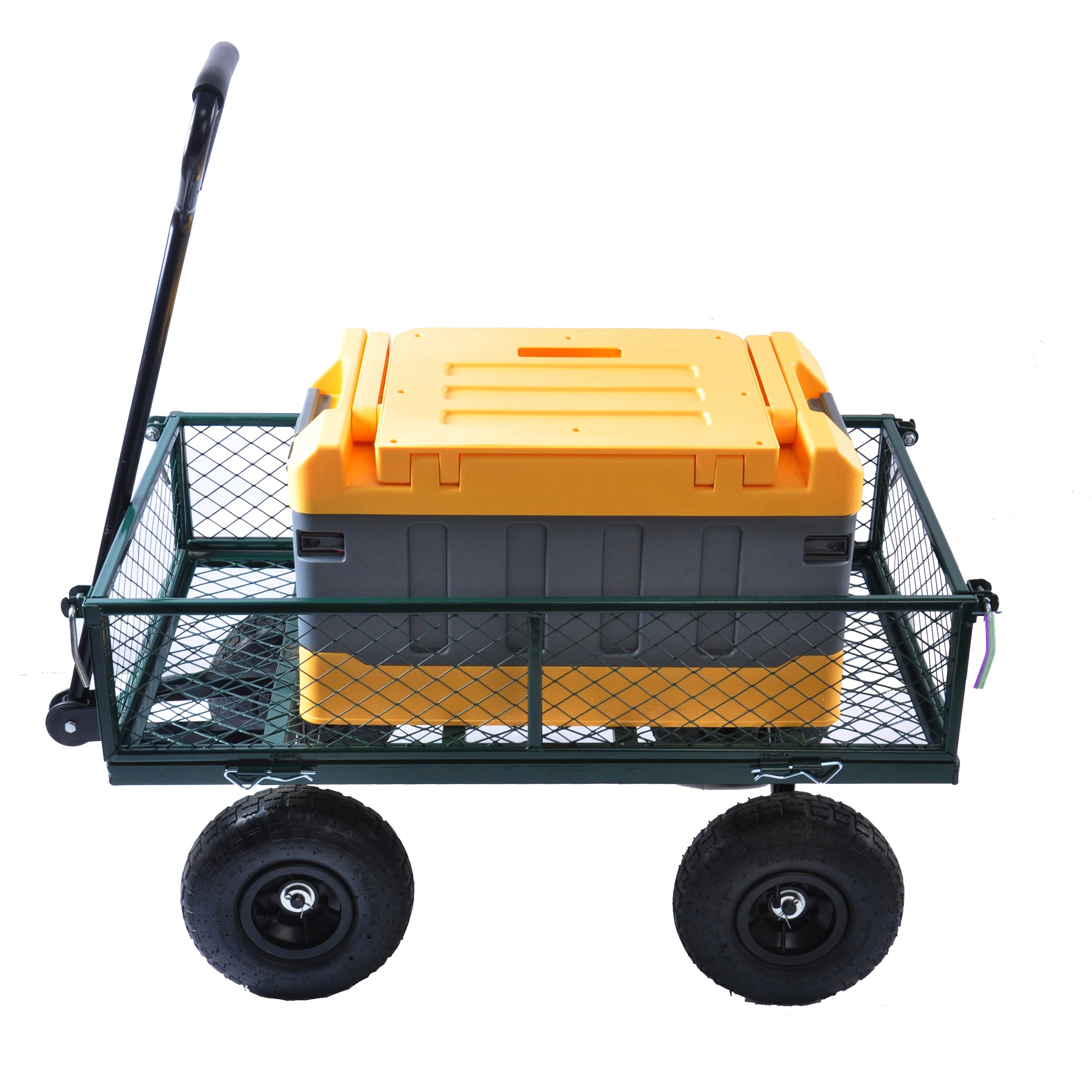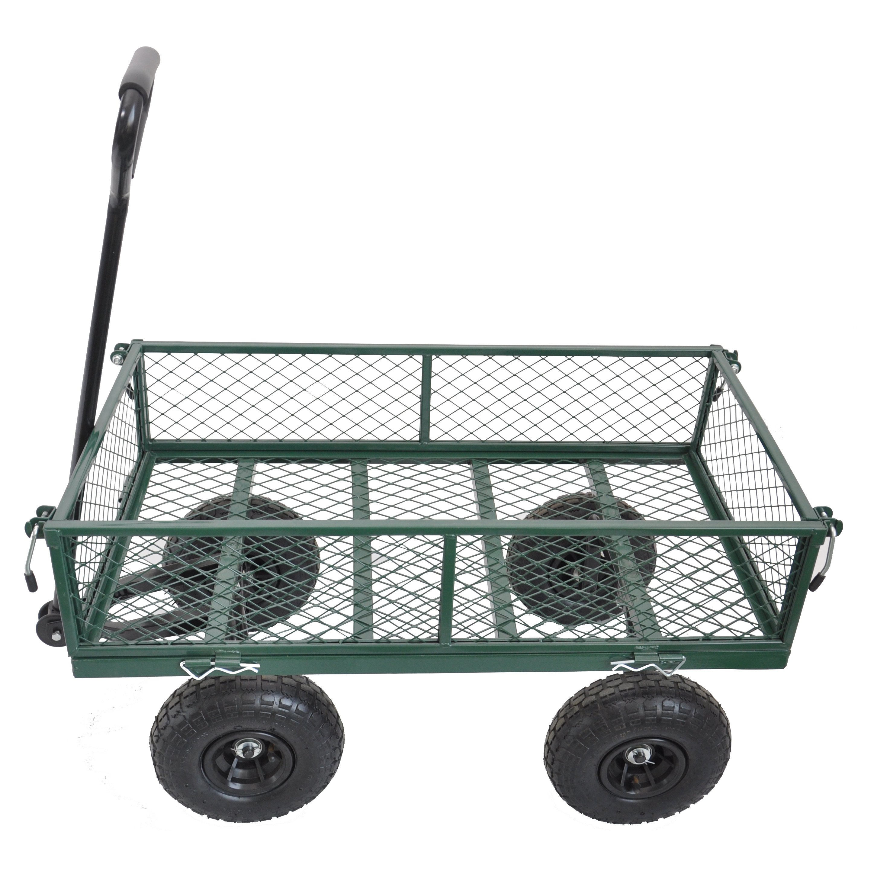 Wagon Garden trucks make it easier to transport firewood; plants; chicken feed; potted soil and honeycombs. The detachable side on the foldable utility wagon increases versatility when carrying larger loads. The practical garden trolley bears 550 pounds (about 249.5 kg); so it is strong enough to carry heavy work. You don't have to drag heavy materials to the original place on multiple trips. Heavy reinforced steel frame; 180-degree steering range handle control and 10-inch (about 25.4 cm) pneumatic tires make this garden utility vehicle stable and ready to help you complete tasks in the yard. Buy quickly! ! !